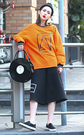 宽松感的长版潮T圆弧形的下摆设计,是此款的亮点,简洁的几何图案,配上休闲裤跟韩版毛帽,帅气干练