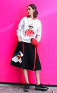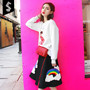 简洁基本款圆领套头卫衣,趣味搞怪卡通人物印花格外亮眼,宽松休闲,洋气百搭,下着时尚彩虹印花A字半身裙,街头范十足