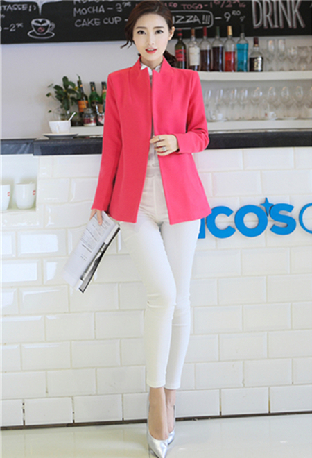 一件适合多种场合的小西装,工作+聚会+游玩都可以,内里搭配修身修身衬衫+白色牛仔裤+尖头鞋,时尚优雅轻熟女哦~