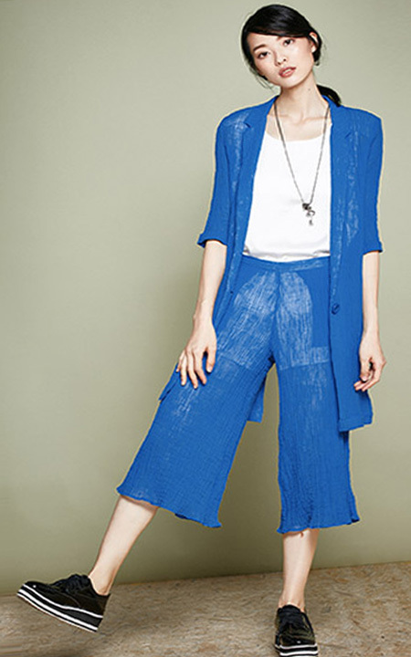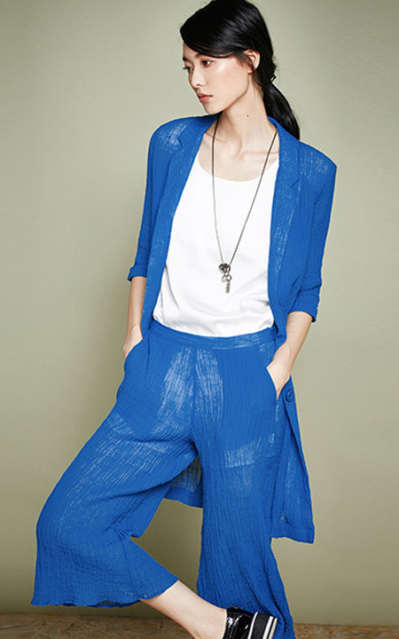 给衣服做个茧法吧,轻薄的面料,搭配干练的西装造型,整个套装越看越有味道呢!