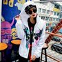 日系街头连帽外套,双层面料,个性彩色骷髅头,鲜艳拉风超级酷,内搭个性T恤,潮范十足