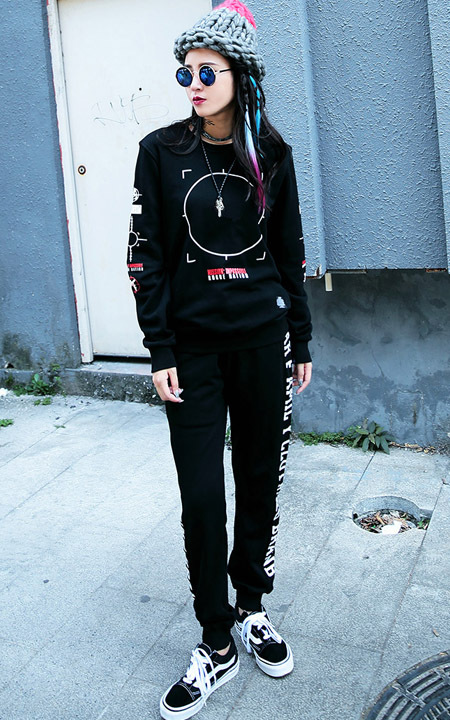 街头风套头卫衣,背面指纹印花图案非常有个性,面料柔软舒适,搭配一条休闲裤,潮范十足