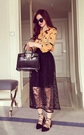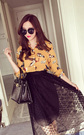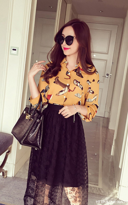 一件雪纺衬衫,个性印花给心情增添美好的色彩搭配优雅气质双层蕾丝显瘦半身裙和绑定的平底单鞋很优雅