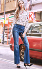 韩版印花套头衬衫,面料柔软手感舒适,透气性好,搭配蓝色牛仔裤,时髦又有型