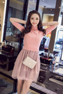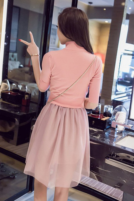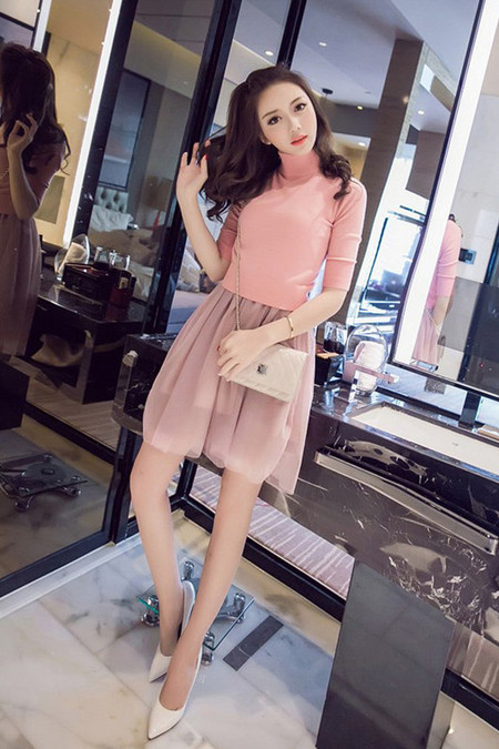 针织衫+纱裙两件套呢,可以分开搭配也可以一起哟,粉粉的颜色,特别的修身,下身蓬蓬的很有公主的感觉哟,搭配高跟鞋很仙呀~