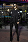 超级酷的一套,可全搭黑色,单排扣拼皮短款,很精神哟~搭配宽松tee和紧身皮裤又酷又帅哟~