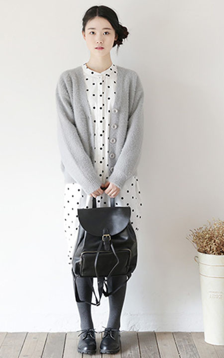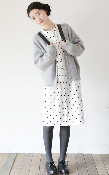 浅雾灰日系开衫,版型宽松的短版,显瘦不挑人,内搭连衣裙很美哟!