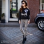 干练大气的皮衣外套,做工很好,穿上很有韵味,搭配漂亮的连衣裙,下身搭配格子小脚裤,气质凸显。