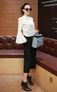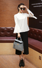 时髦的套头衬衫,喇叭袖的装饰,修饰手臂线条,上身很优雅,搭配休闲阔腿裤,凸显迷人的魅力!