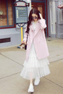 超级粉嫩的一件风衣,爱不释手呢,在春日里是少不了马卡龙色的,收腰系带版型好,不挑身材哟,内搭tee+长裙很仙女哟~