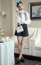 衬衫和短裤套装,穿在身上优雅而知性~经典衬衫款式,重工刺绣花纹,优美大气,搭配小方包+厚底鞋,气质优雅范!