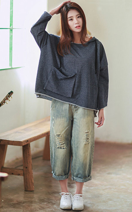 彰显个性的连帽卫衣,非常带感的率性洒脱,耐看减龄的细白蓝条,搭配小白鞋,非常清新舒适。