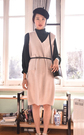 宽松的吊带+开衫两件套,棉麻的材质噢,上身很舒服呢,透气吸湿,橡皮粉很显肤白,搭配一字扣粗跟鞋,休闲又好看