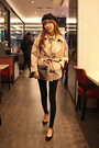 宽松的吊带+开衫两件套,棉麻的材质噢,上身很舒服呢,透气吸湿,橡皮粉很显肤白,搭配一字扣粗跟鞋,休闲又好看