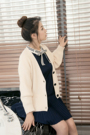 宽松的吊带+开衫两件套,棉麻的材质噢,上身很舒服呢,透气吸湿,橡皮粉很显肤白,搭配一字扣粗跟鞋,休闲又好看