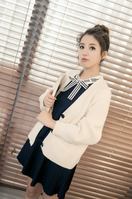 春天就是需要一款这样的针织短开衫,外搭神器,里面搭配衬衫T恤都可以。里面的连衣裙质感和垂感都很好,很舒服的哦~