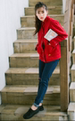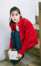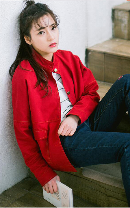 经典的黑白条纹t恤衫搭配有个性的爱心刺绣牛仔裤,萌萌的少女心十足。外搭一件立领外套,宽松版型,带着BF风的不羁随性。