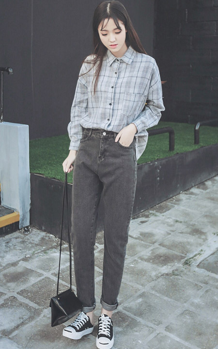 韩版学院风宽松衬衫,格纹设计经典又时尚,手感舒适透气性好,搭配一双帆布鞋,简约又大方