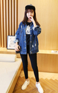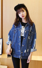 宽大的牛仔外套,BF风十足!上身大气随意,内搭纯棉T恤,下身搭配紧身小脚裤,可爱减龄。