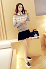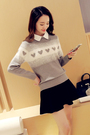 假两件套得毛衣,毛衣很特别的是胸前有一排爱心,珍珠镶嵌特别美,拼色也做得很好大气,搭配太阳裙超级减龄的哟,春日特别合适