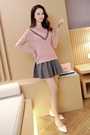 毛衣纯色低领套头设计,厚度适中适合春秋单穿,冬季打底,百搭单品哟,胸前V字编绳设计很特别呢,搭配A字裙很青春哟~