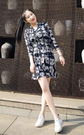 唯美的印花连衣裙,半透七分袖的搭配,以高雅的色调为基准,唯美的风格得到了很好的诠释。