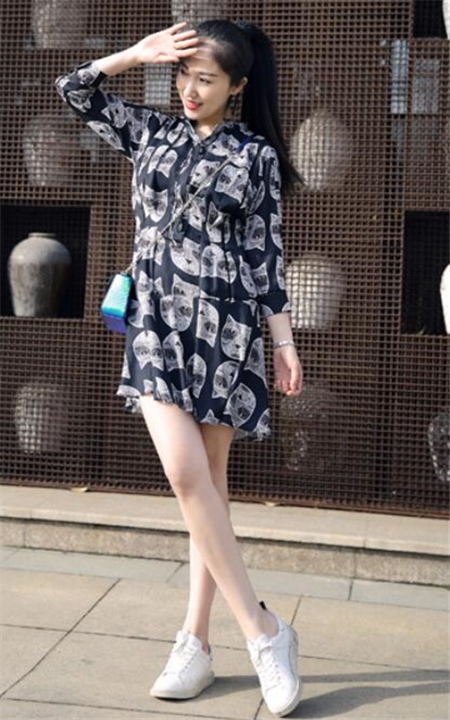 猫头印花连衣裙搭配孔雀变色手包,俏皮又不失精致,春季出游踏春很推荐的一套