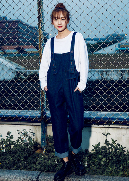 每个菇娘的少女时代怎能少得了背带牛仔裤呢,深色系的bf风背带牛仔,穿上很减龄呢,纽扣袋方便穿脱呢,内搭浅色系卫衣绝配~