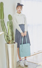 小翻领设计,清新文艺。胸前的小树苗刺绣增加可爱感。搭配高腰蓝格子半身裙,飘逸灵动。很显嫩哦。