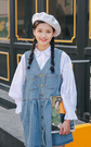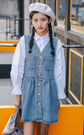俏皮减龄的无袖牛仔裙,气质V领,时尚单排扣样式,尽显青春活力,内搭灯笼袖纯棉白衬衫,很时尚很可爱,学院风十足