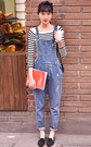 经典复古条纹针织衫就是这么百搭,简单的设计永不过时,搭配休闲背带牛仔裤,学院风十足,萌萌哒