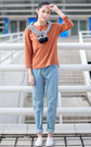 宽松的吊带+开衫两件套,棉麻的材质噢,上身很舒服呢,透气吸湿,橡皮粉很显肤白,搭配一字扣粗跟鞋,休闲又好看