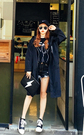 宽松的吊带+开衫两件套,棉麻的材质噢,上身很舒服呢,透气吸湿,橡皮粉很显肤白,搭配一字扣粗跟鞋,休闲又好看