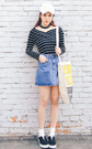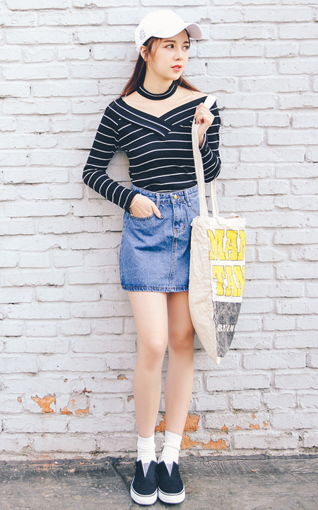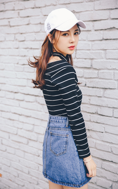 非常时尚的V领打底T恤,修身款,交叉的条纹,很时尚很洋气,还带有挂脖设计,时尚显瘦,搭配条牛仔短裙,很漂亮呢