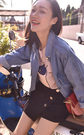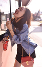 宽松的牛仔外套有点男友风的味道,内搭短袖休闲t恤十分舒适,半身裙的搭配甜美减龄,尽显修长腿线
