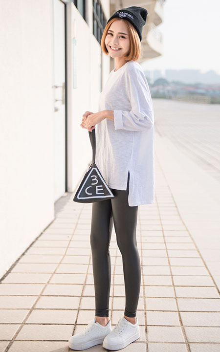 最经典百搭的纯色T恤,下摆前短后长设计,单穿也一样出色~搭配下皮裤,增添几分时髦度。
