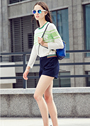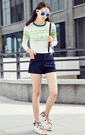 独特的网纱拼接+圆领撞色+super字母,超级活力又特别呢,搭配松紧腰的阔腿短裤特别有活力呀~小伙伴们就这样愉快的出游咯
