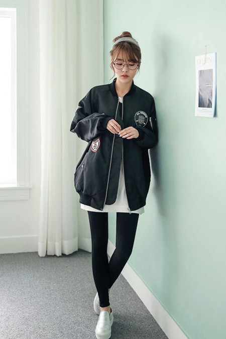 印象里穿棒球服外套的女生总是酷酷的,尤其是军绿色的,平时爱bf风的姑娘们必须入的一款哟,搭配宽松t+小脚裤特帅气~