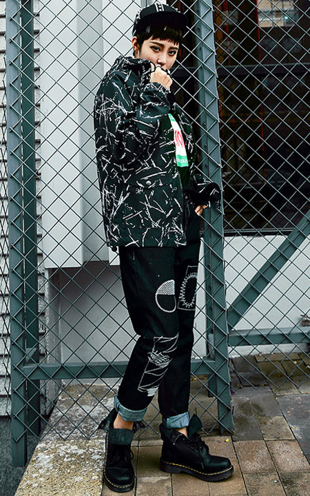 街头嘻哈连帽运动外套,个性泼墨印花设计,双层涤纶面料,柔软光滑,搭配黑色牛仔裤,潮流达人就是你