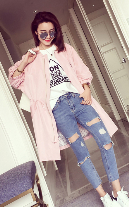 带有运动街头风的短夹克,以塑形拉风为基本的长款风衣都可以列入时尚行列,搭配凹造型必备破洞牛仔裤和贝壳鞋很时尚