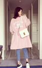 宽松的吊带+开衫两件套,棉麻的材质噢,上身很舒服呢,透气吸湿,橡皮粉很显肤白,搭配一字扣粗跟鞋,休闲又好看
