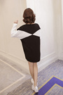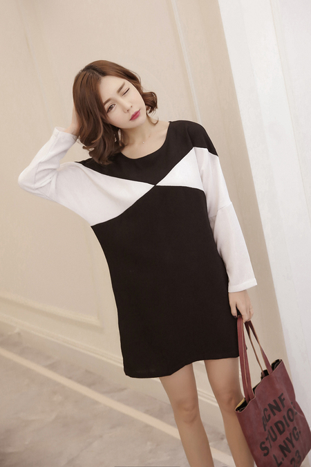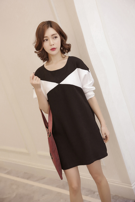 小蝙蝠袖长袖设计,随性休闲,慵懒范立马就出来了~宽松的版型,黑白撞色拼接,上身就很有范儿哦~个性时尚,很潮很百搭!