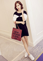 弹力又修身的露肩t恤,搭配性感包臀半身裙,简约又气质~多色可选~把衣脚放入裙子里更气质哦~