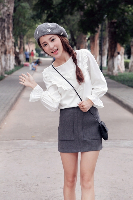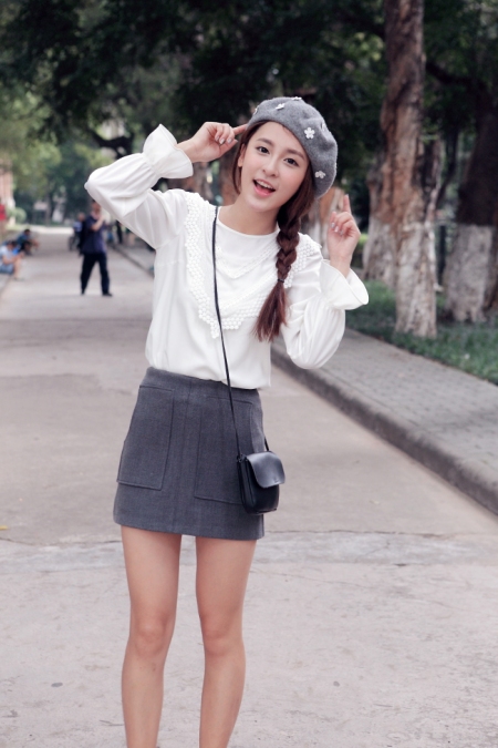 时尚大气的翻领衬衫,修身的剪裁,质感极佳,搭配优雅的半身裙,蕾丝拼接式的裙摆,散发迷人的魅力!