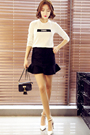 超级好看的吸睛蕾丝T恤+短裙套装,蕾丝钩花仙女又浪漫哦,搭配尖头高跟鞋时尚又好看~