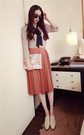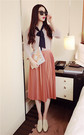 宽松的吊带+开衫两件套,棉麻的材质噢,上身很舒服呢,透气吸湿,橡皮粉很显肤白,搭配一字扣粗跟鞋,休闲又好看