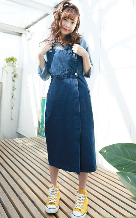 牛仔背带裙,超级喜欢这种不规则的潮流感,减龄的同时也很有女人味,搭配开领的帽衫,青春又阳光。