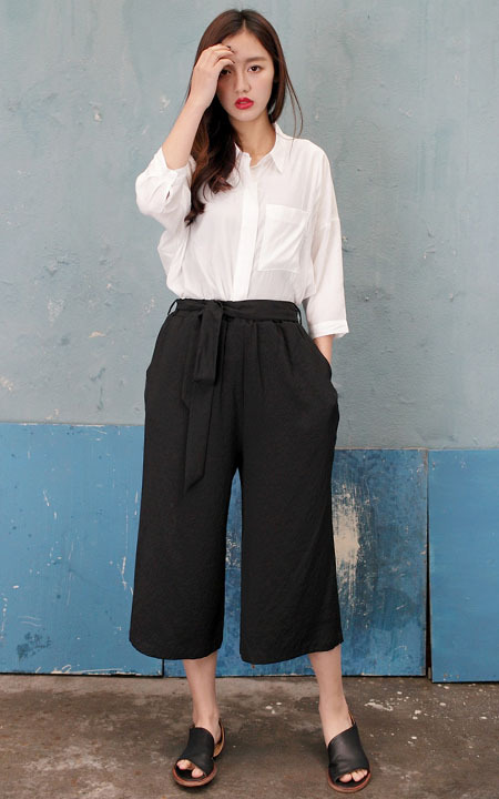 相信每个女孩的衣橱里总会有一件白衬衫,就如内心深处的那个角落,简单纯净。搭配黑色阔腿裤,经典永不过时。
