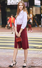 百搭纯色衬衫,落肩七分袖的设计,时尚又简约,面料透气性好,搭配枣红色的半身裙,气场十足