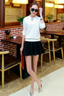 超级好看的吸睛蕾丝T恤+短裙套装,蕾丝钩花仙女又浪漫哦,搭配尖头高跟鞋时尚又好看~